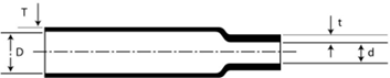 Shrink Ratio and Operating Temperature: HST has a 2:1 shrink ratio and when fully recovered, the 2:1 material will shrink to one half (50%) of its original supplied diameter. HST has a continuous operating temperature rating of -55 degrees C (-67 degrees F) and 125 degrees C (257 degrees F).